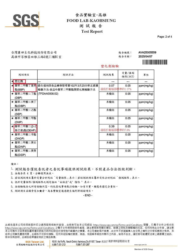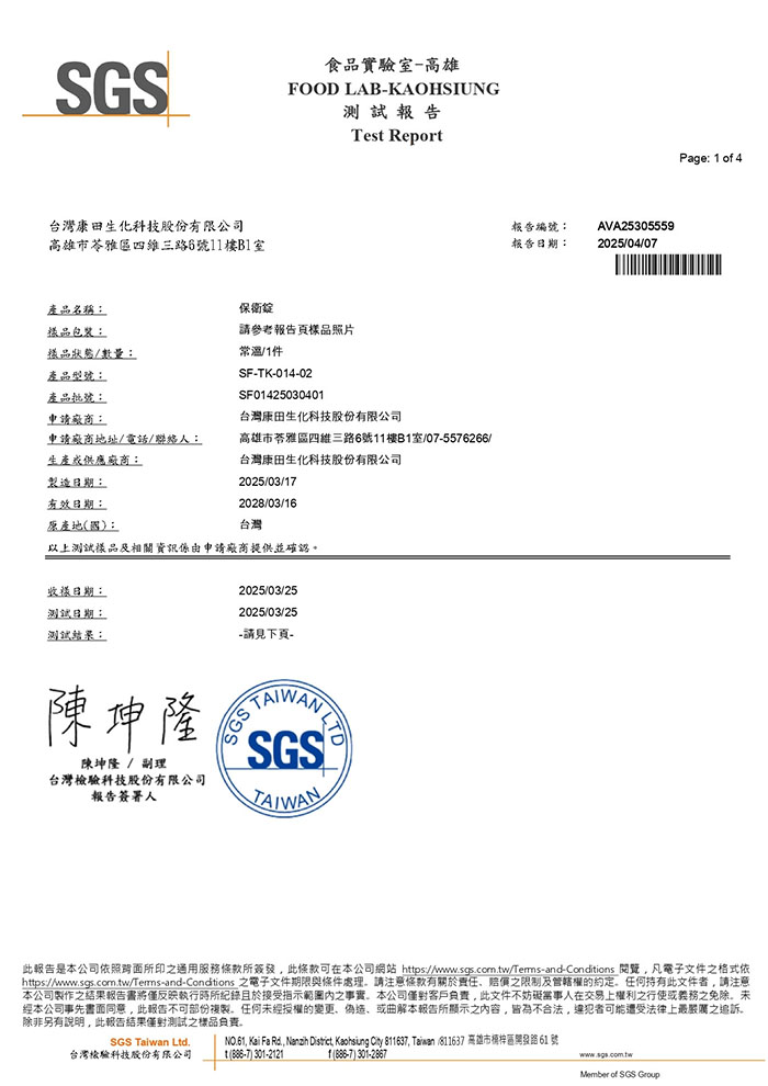 | 製造生產 | 台灣康田生化科技(股) |